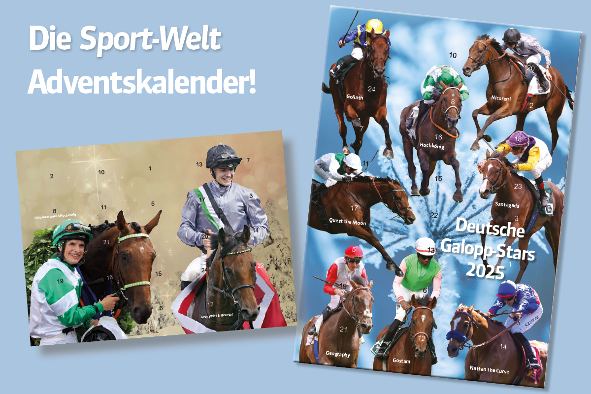 Auch 2025 gibt es wieder den Adventskalender der Sport-Welt mit Motiven der deutschen Galopp-Stars 2025.