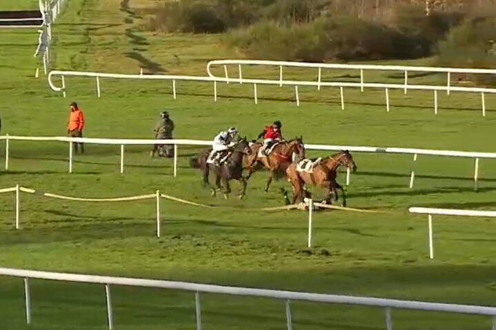 Mit dem Sieg in der Hand wurde der vierjährige Wallach, der zur Quote von 4,4:1 gestartet war, auf der Flachen nach dem letzten Sprung reiterlos.