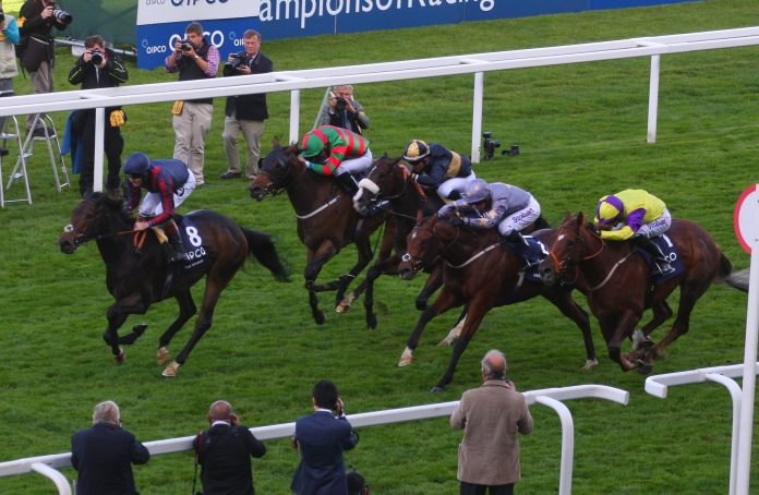Lange führte Signs Of Blessing, der Sieger der Goldenen Peitsche von 2014, doch gegen Ende gingen dem Invincible Spirit-Sohn die Kräfte aus. Nach einem Rennen aus dem Mittelfeld hatte The Tin Man 100 Meter vor dem Ziel noch einmal mächtig beschleunigt und gewann unter Tom Queally leicht sein erstes Gruppe I-Rennen. Dahinter musste das Foto entscheiden und wies Growl als Zweiten aus. Dritter wurde Brando (Zum Video). „Das ist wirklich wundervoll, er ist ein so großartiges Pferd. Es war eine große Anstrengung meines gesamten Teams ihn heute auf den Tag so vorbereitet zu haben. Das war das erste Mal in diesem Jahr, dass er einen wirklich ungestörten Rennverlauf hatte. Und es war ein toller Ritt von Tom Queally, er hat verstanden, dass man dieses Pferd wirklich von Beginn an reiten muss. Und es ist toll für ihn, hier wieder ganz oben auf dem Treppechen zu stehen. Er war uns das Jahr über eine große Hilfe und hatte nicht immer das nötige Glück“, so James Fanshawe.