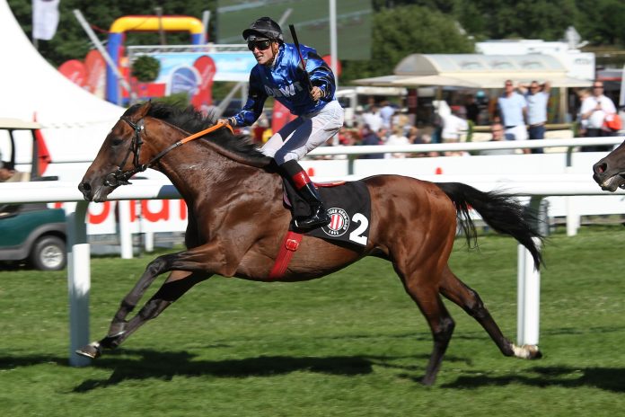 „Dschingis Secret ist wieder in seiner absoluten Bestform“, sagte Markus Klug nach dem neuerlichen Sieg des Soldier Hollow-Sohnes am Sonntag im pferdewetten.de – Großen Hansa-Preis von Hamburg. „200 Meter vor dem Ziel war ich mir sicher, dass keiner mehr vorbeikommt.“ Und Martin Seidl, der Siegjockey sagte: „Ich hätte noch mehr in der Hand gehabt, ich war froh, dass ich rechtzeitig eine Lücke gefunden habe.“