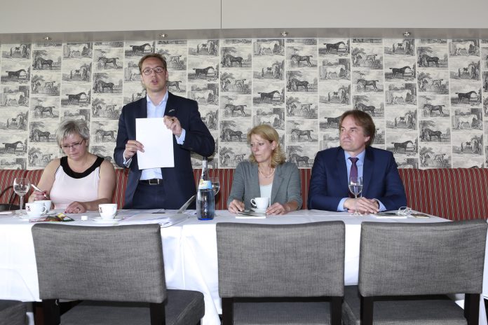 Neben Rückblicken auf das vergangene Jahr standen für die 61 anwesenden Mitglieder auch Neuwahlen auf dem Programm. Dabei wurde der Vorstand um Präsident Paul von Schubert, Vize-Präsidentin Katja Baltromei und Kirsten Schmitt von den Wahlberechtigen zunächst ohne Gegenstimme entlastet. Benedikt Faßbender-Fiegl, den es aus privaten Gründen nach Wien gezogen hat, gehört seit Samstag nicht mehr dem Vorstand an. Für seine langjährigen Verdienste im Verband wählte man ihn am Samstag zum Ehrenmitglied. „Es war mir eine Freude und Verpflichtung zugleich“, blickte der langjährige Geschäftsführer des Kölner Rennvereins zurück.