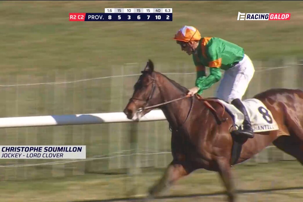Nach schlechtem Start galoppierte Lord Clover zunächst im Mittelfeld, in der Geraden stellte er die Weichen mit Christophe Soumillon direkt auf Sieg: Am Ende war es ein Sechseinhalb-Längen-Sieg zur Quote von 1,6:1.