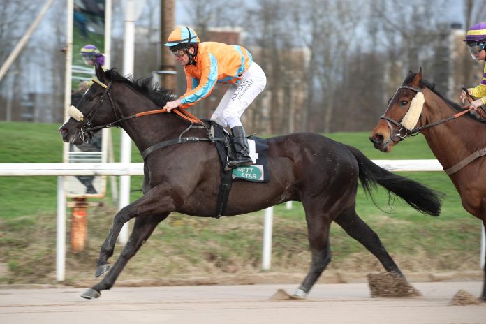 In den ersten beiden Rennen am Sonntag in Dortmund-Wambel kamen zwei der in diesem Winter erfolgreichsten Pferde zu ihrem jeweils dritten Treffer in der laufenden Sandbahnsaison. Im ersten Rennen, dem Ausgleich IV über 1200 Meter, war es Bobby’s Charm (Jozef Bojko, 3,7:1), der für den fünften Saisonsieg für Frank Fuhrmann sorgte (zum Video). Der Trainer aus Möser setzte sich damit im Championat auf zwei Siege Vorsprung ab. Bobby’s Charm setzte sich mit einer dreiviertel Länge Vorsprung gegen den Favoriten Naqdy durch, hinter dem mit Uh Oh Chongo ein weiteres Fuhrmann-Pferd Dritter wurde. „Ich war nir gar nicht sicher, wer von meinen drei Pferden gewinnt. Eigentlich wollte ich eins-zwei-drei sein, ich hatte Mumm auf alle drei“, so Frank Fuhrmann nach dem Rennen.