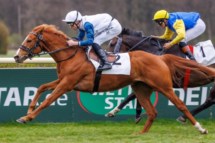 Das zweite Handicap am Sonntag in Hoppegarten war das siebte Rennen, ein Ausgleich III über 1600 Meter. Neun Pferde kamen an den Start, von denen gleich sechs in Hoppegarten, bzw. Neuenhagen trainiert werden. Doch auf den ersten drei Plätzen landeten genau die anderen drei Pferde.