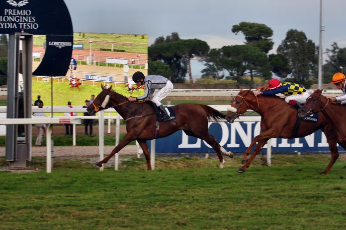 Zwei deutsche Stuten starteten am Sonntag in Rim im Premio Lydia Tesio (264.000 Euro) der Gruppe I über 2000 Meter. Doch Ferdinand Leves Daytona Bay und die von Waldemar Hickst vorbereitete Nymeria hatten nichts mit der Entscheidung zu schaffen. In einem schnell gelaufenen Rennen sah man Alex Pietsch auf Nymeria zunächst an fünfter Stelle, doch im Einlauf konnte die Stute des Stalles Grafenberg nicht weiter zulegen. Am Ende war es Rang sechs. Einen Rang davor passierte Daytona Bay die Linie.