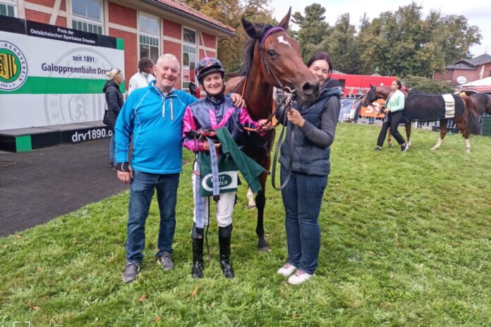 „Sie war schon ein sehr ausgeglichenes Pferd, als sie zu uns in den Stall kam. Dass sie Talent hat, haben wir alle gewusst, aber ich war mir nicht sicher, dass sie es heute schon zeigen kann“, so Siegreiterin Lilli-Marie Engels nach dem Rennen. Für die 25jährige Reiterin war es der 200. Karrieresieg.
