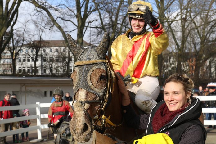 Sechs Rennen, die ersten fünf davon unter Beteiligung der PMU, standen ab dem frühen Samstagmorgen in Neuss auf dem Programm. Zwei davon schnappte sich Reiterin Esther Ruth Weißmeier, der damit ein mehr als gelungener, vorläufiger Abschied gelang. Die 21-jährige, die sich am Montag mit dem Ziel Australien kurzfristig von der hiesigen Turfgemeinde verabschiedet – sie wird dort für mehrere Monate am Stall von Danny O´Brien arbeiten, siegte zunächst mit der von ihrer Mutter Regine trainierten 26:10-Chance Red Dynamite (Ausgleich IV, 2300 Meter) (Zum Video) ehe sie auch mit dem holländischen Gast Lunar Prospect (Mary Berrevoets-Uivel, 37:10) in einem weiteren Handicap der untersten Kategorie (1900 Meter) nicht zu bezwingen war (Zum Video).