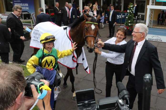 Hans-Jürgen Gröschel konnte sich auch deshalb über den siebten Platz von Iquitos freuen, weil für den vier Jahre alten Adlerflug-Sohn immerhin noch 175.350 Euro an Gewinn zu Buche schlugen – deutlich mehr als für seinen Sieg im Großen Preis von Baden. Dabei handelt es sich zwar nicht um einen Anteil am offiziellen Preisgeld, diese reichen nur bis Rang fünf herunter, wie international üblich.