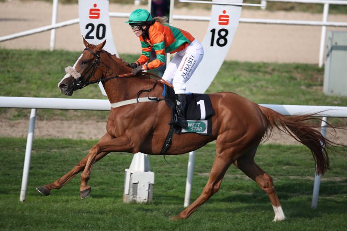 Das sollte sie und ihre Reiterin Sonja Daroszewski aber nicht stören, beide kamen Start-Ziel zu einem völlig ungefährdeten Erfolg. Das höchste Handicap des Tages, der Ausgleich III über 1600 Meter, wurde zur sicheren Beute von Roland Dzubasz Antares (97:10), der seinem Dresdener Sieg somit gleich einen weiteren folgen ließ.
