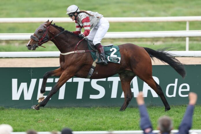 „Wir konnten uns ein ungestörtes Rennen vorne machen, so wie er es braucht. Und dann hat er zum Schluss gut durchgezogen, so hat es zum Sieg gereicht“, so Reiterin, Trainerin und Besitzerin Janine Beckmann über ihren Sieger.