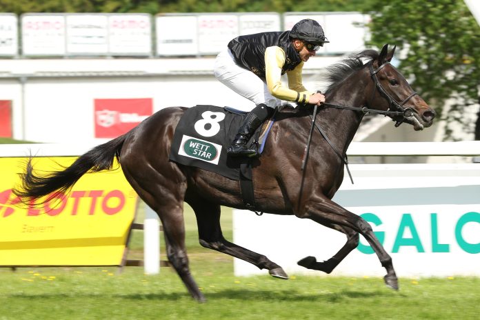 Die Wooton Bassett-Tochter sicherte sich den Sieg im einleitenden Rennen des Münchener Freitags-Renntags, ließ den sechs Gegnern keinerlei Chance. Aladar Ari un Vincero belegten die Plätze.