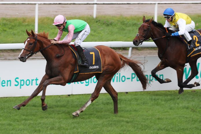 Auf Platz drei landete Markus Klugs Favorit der Prüfung Accaro, der immer dabei war, mit dem Ausgang des Rennens am Ende aber nichts zu tun hatte. Wer auf den Sieg der Kitten´s Joy-Tochter gesetzt hatte, durfte sich über eine satte Siegquote von 99:10 freuen. Die Hickst-Stute könnte in diesem Jahr noch einmal an den Start kommen. Sie besitzt noch eine Nennung für das Isfahan BBAG-Auktionsrennen am 1. November in München.