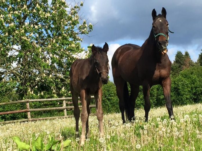 Das Bild zeigt Spirit of Eagles, die Mutter unter anderem des großen Silvano, mit dem vier Monate alten Maxim. Manche Geschichten schreibt nur der Rennsport.