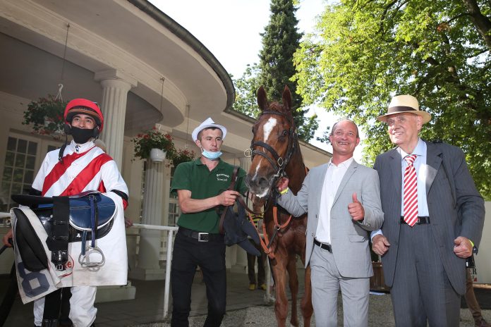 „Simon Stokes hat das super hinbekommen“, gab Besitzer Albrecht Woeste ein Kompliment in Richtung des Mannes ab, der Byteria die Angst vor der Startmaschine genommen hatte. „Endlich hat sie nach ihren zweiten Plätzen mal ein Rennen gewonnen.“ Carlos Henrique arbeitet seit Mai am Stall von Sascha Smrczek, nun gab es den ersten gemeinsamen Sieg. „Ich bin happy, dass die Stute es geschafft hat.“