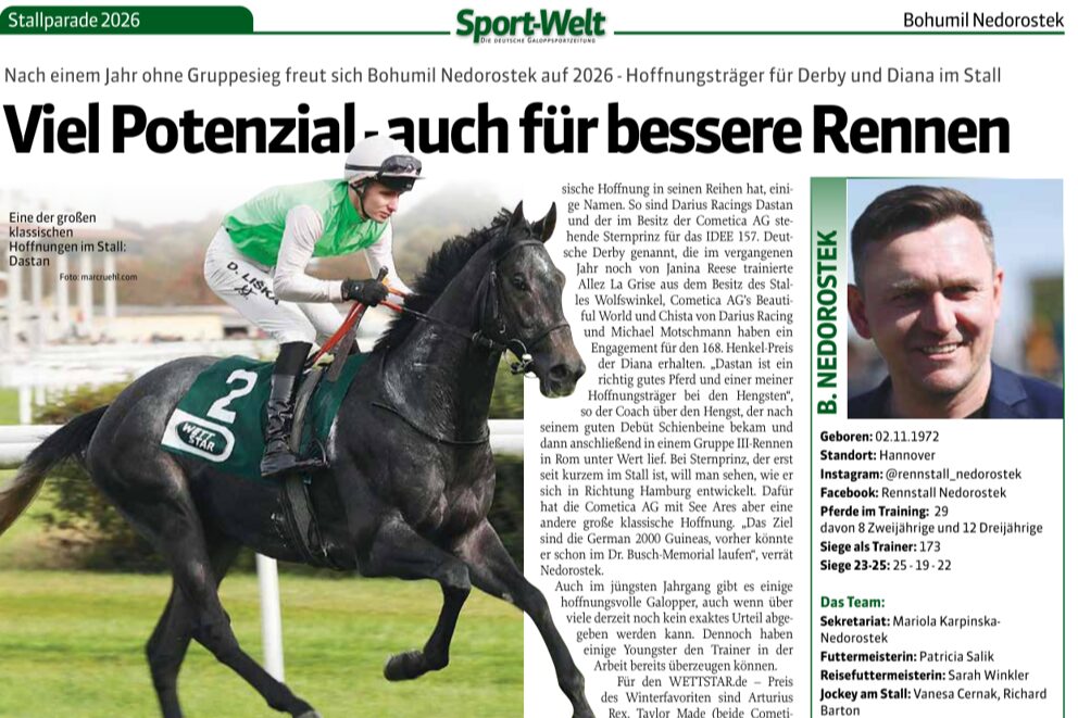 Und so ist sie auch in diesem Jahr wieder erhältlich. Auf CD oder per Download – die Sammlung aller in der Sport-Welt erschienenen Stallparaden.