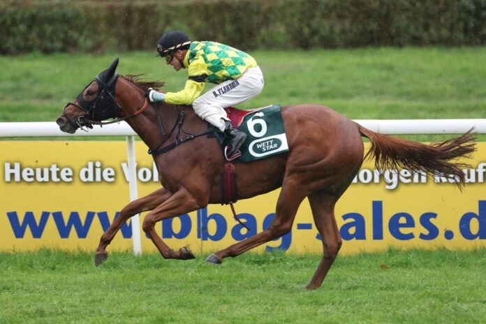 Dieser stellte sie nun erstmals im Spodeck Auftaktrennen erstmals unter seiner Regie vor und dabei gab es direkt einen Volltreffer, denn von der Spitze aus gewann Scaletta ganz klar gegen vier Konkurrenten über 1300 Meter.  „Ich denke sie ist eine nette Stute. Bei den letzten Malen ging sie immer von hinten nun haben wir es mit ihr von vorne versucht. So konnte sie am Ende deutlich besser zulegen“, analysierte Siegreiter Bertrand Flandrin.