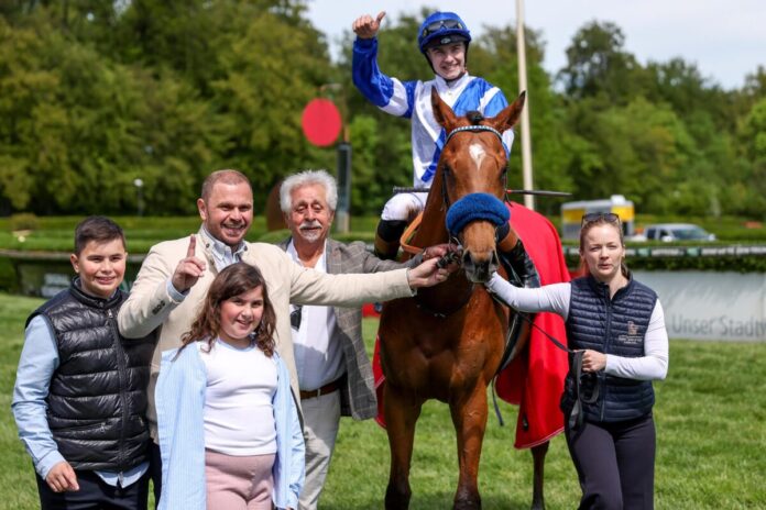 „Ich wusste auf der Linie nicht, ob ich gewonnen habe. Die ganze Gerade ging es hin und her, im Ziel hatte er den Kopf vorne. Das ist ein schönes Geburtstagsgeschenk für Familie Cengiz“, so Leon Wolff, der das Rennen im vergangenen Jahr, ebenfalls mit einem Pferd aus dem Stall von Henk Grewe (Namaron) bereits gewonnen hatte.